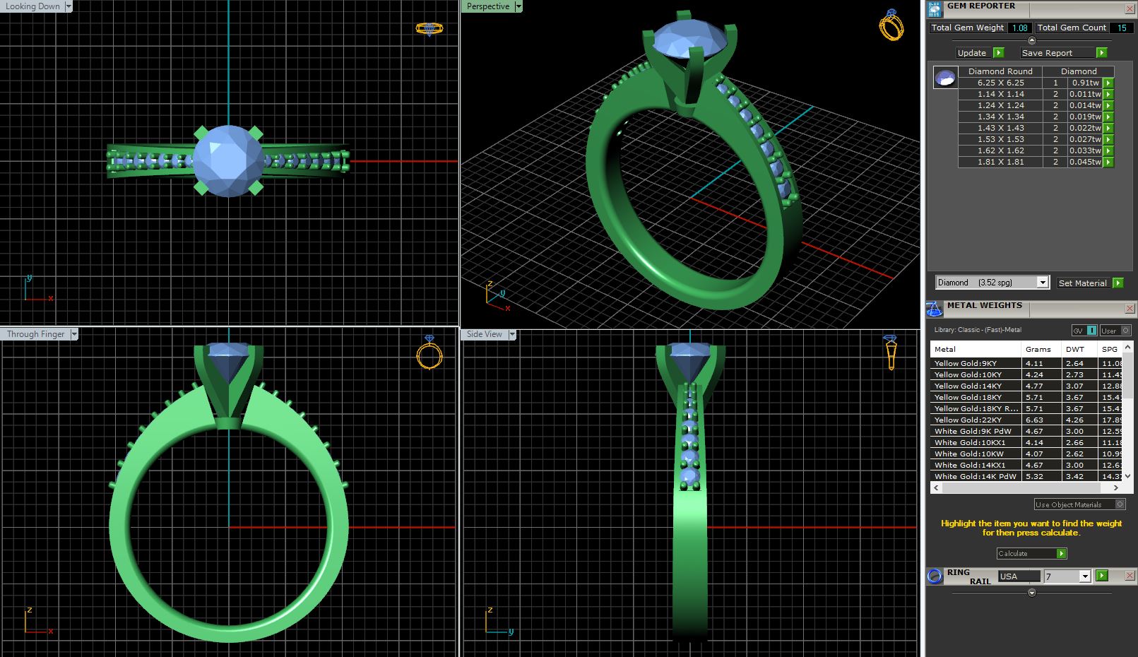 Architecturally inspired with clean crisp lines. A center diamond is accented by graduating diamond set shoulders